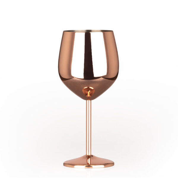Copa de Acero inoxidable 304 SS de 0.6mm de espesor, con superficie lisa en color encobrizado. Producto BPA FREE, para el contacto con líquidos y alimentos. Capacidad 500ml. Presentación en bolsa PP + caja de regalo de cartón negro.