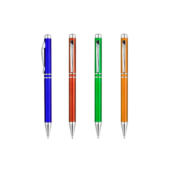 Bolígrafo plástico «Prime» con cuerpo de color metalizado. Escritura azul.