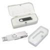 USB 2.0 Pendrive con carcasa metálica de giro, de 16 GB de capacidad. Presentación en caja de PVC traslúcido.