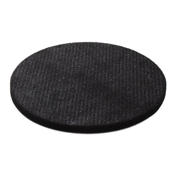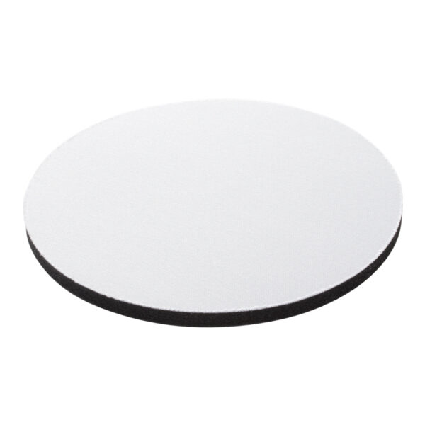 Posavaso redondo de 5mm de espesor y 10cm. de diámetro, con base de silicona negra y cubierta de tela poliéster blanco para Sublimación.